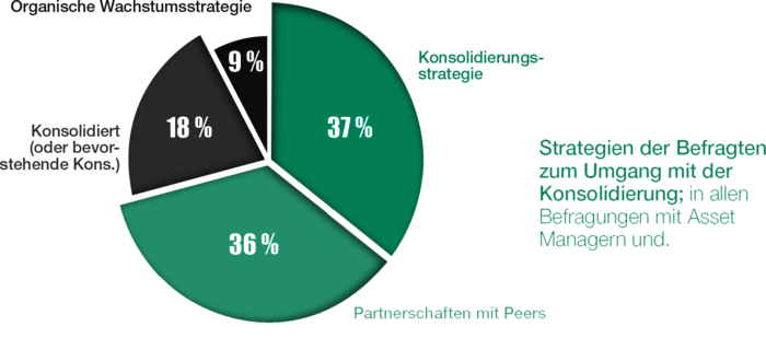 Viele Asset Manager haben bemerkt, dass die kritische Größe in den letzten Jahren gestiegen ist. Aus Sicht mehrerer Befragten liegt das Marktziel bei einem verwalteten Vermögen von 1 Billion Euro. Am Markt besteht daher die dringende Notwendigkeit einer Konsolidierung.